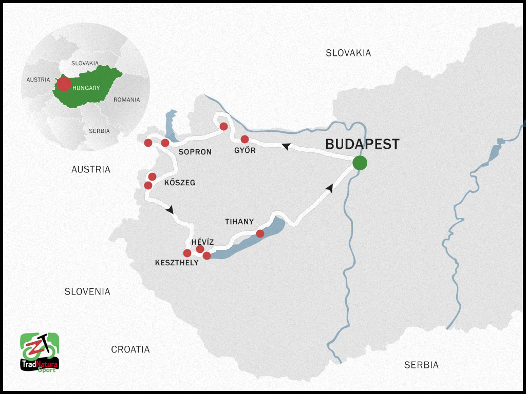 An easy bike ride in beautiful woods around picturesque lakes of the charming town Tata. Here you can enjoy the medieval castle, and a delicious lunch in a Michelin star restaurant. After all these you can walk around the wonderful Baroque houses & the Cathedral in Győr, the “Town of rivers”, and you can taste the home made wines and lovely dinner of the owner in our cosy village-style inn. (appr 23km/14m cycling)